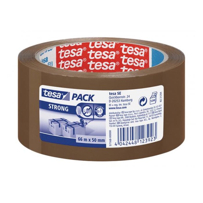 Veľmi odolná a silná páska na balenie, lepenie a uzatváranie ťažkých balíkov a predmetov. Vysoko odolný PVC nosič, lepidlo z prírodného kaučuku. Bezhlučná a rovnomerné odvíjanie. Vhodná do ručných odvíjačov. Väčšie balenie 6 ks. Rozmery 50 mm × 66 m. Farba hnedá.