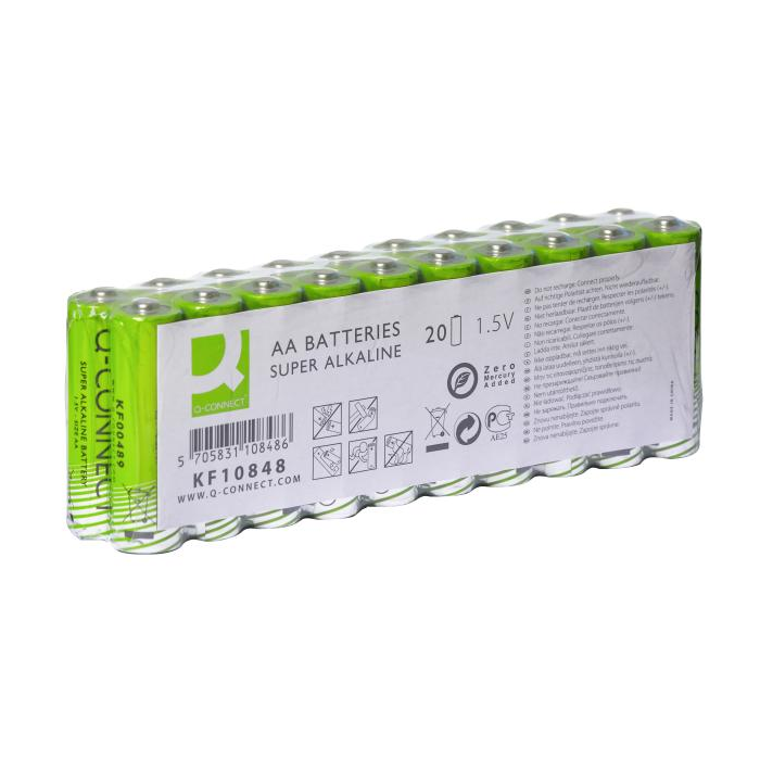 Univerzálna vysokovýkonná alkalická 1,5 V batéria Q-Connect. Neobsahuje pridanú ortuť. Veľkosť AA. Balenie 20 ks.