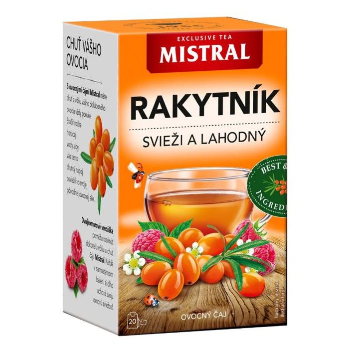 Aromatizovaný ovocný čaj s Rakytníkom v nálevových vreckách.