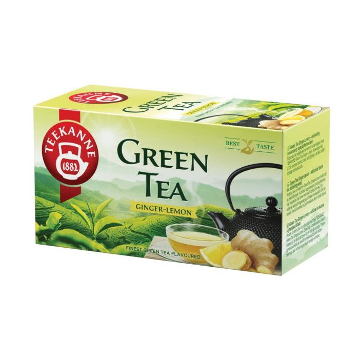 Zelený čaj so zázvorom a citrónom, aromatizovaný.