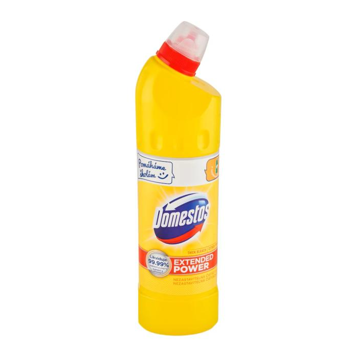 POZOR! Nepoužívajte spolu s inými výrobkami. Môžu sa uvoľňovať nebezpečné plyny (chlór). Spôsobuje vážne poleptanie kože a poškodenie očí. Veľmi toxický pre vodné organizmy. Môže byť korozívna pre kovy. Uchovávajte mimo dosahu detí. Uchovávajte iba v pôvodnej nádobe. Zabráňte uvoľneniu do životného prostredia. Noste ochranné rukavice/ochranný odev/ochranné okuliare/ochranu tváre. PRI KONTAKTE S POKOŽKOU (alebo vlasmi): Všetky kontaminované časti odevu okamžite vyzlečte. Pokožku opláchnite vodou/sprchou. PO ZASIAHNUTÍ OČÍ: Niekoľko minút ich opatrne vyplachujte vodou. Ak používate kontaktné šošovky a ak je to možné, odstráňte ich. Pokračujte vo vyplachovaní. Okamžite volajte TOXIKOLOGICKÉ INFORMAČNÉ CENTRUM/lekára. Zozbierajte uniknutý produkt. OBSAHUJE: chlórnan sodný; hydroxid sodný; N-alkyl-N,N-dimetylamíny (alkyl je z kokosového oleja), N-oxidy.