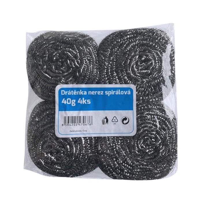Pletené oceľové drôtenky. Ľahko sa oplachujú a sú veľmi účiné. Čistia bez poškriabania.