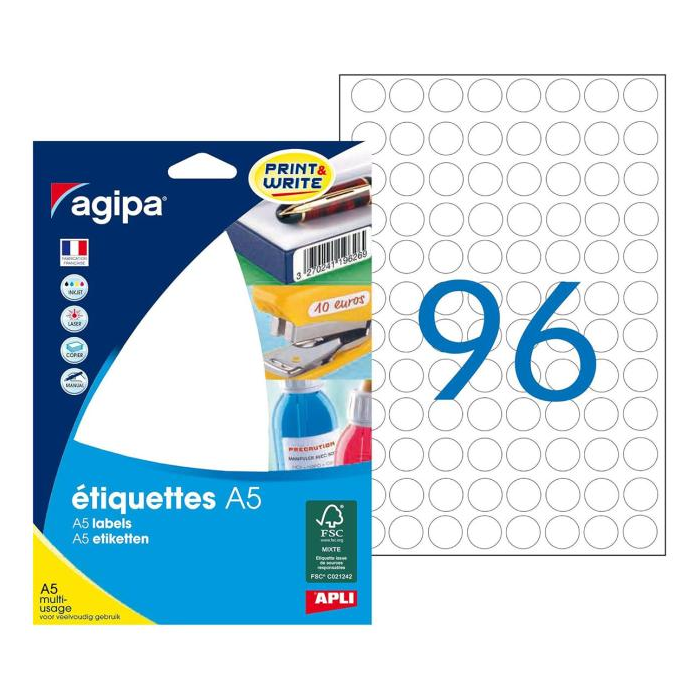 Etikety univerzálne odnímateľné 25,4x10mm Agipa A4 25 hárkov