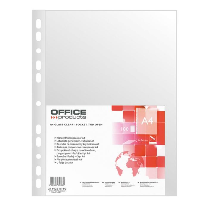 Priehľadný číry euroobal z polypropylénu. Otvor zhora, eurodierovanie, povrch lesklý a hladký. Formát A4. Balenie 100 ks. Balený v sáčku. Hrúbka: 40 mic. Výrobca: DONAU