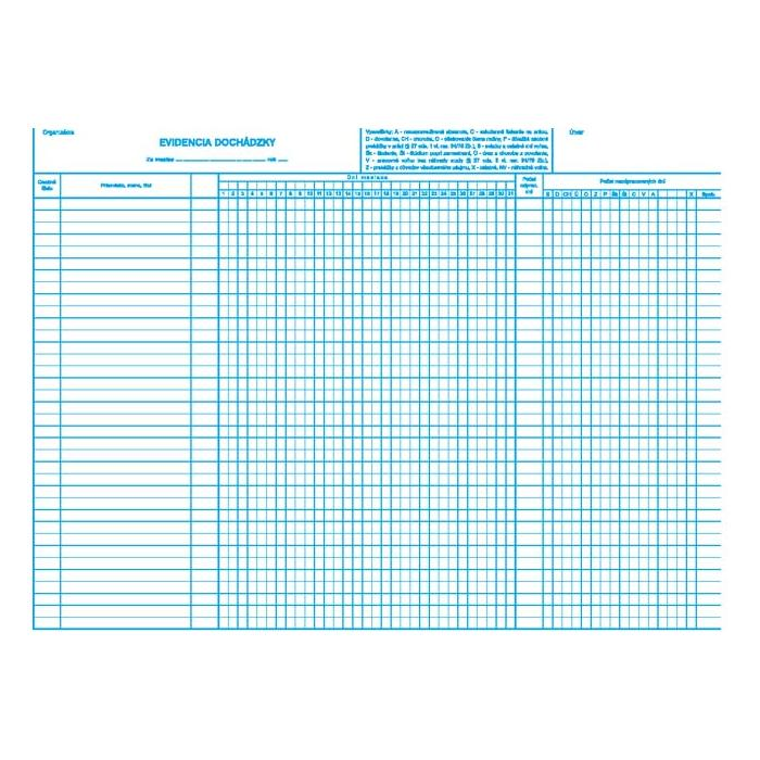 Tlačivo : Evidencia dochádzky formát A3 list.