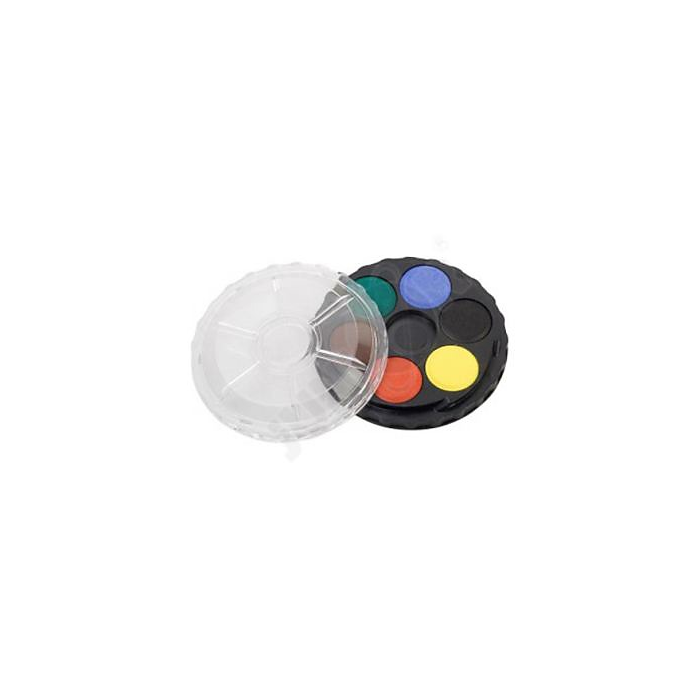 6-farebná sada netoxických vodových farieb dodávaná v okrúhlom plastovom boxe. Farby sú vodou riediteľné, vhodné na papier a iné savé materiály.