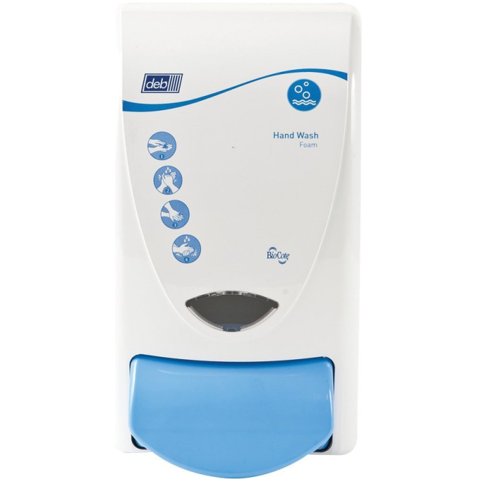 Dávkovač pre 1l náplne DEB s renegeračním krémom, s farebným kódovaním a piktogramami pre správne použitie. S doživotnou zárukou. Povrch je ošetrený striebro-iónovou vrstvou BioCote® zaisťujúci účinnú redukciu mikroorganizmov.