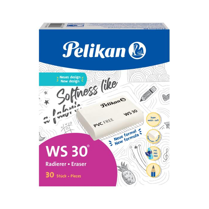 Guma bez PVC Pelikan WS 30 L krémová 30 ks