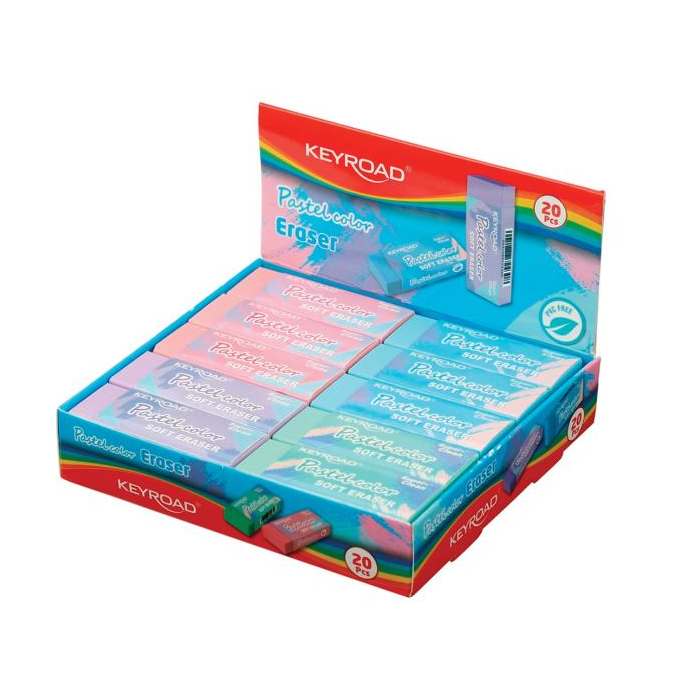 Guma KEYROAD bez PVC, mix pastelových farieb, displej 20 ks