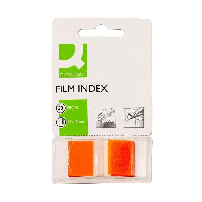 Indexové fóliové lístky, popisovateľné a snímateľné. Rozmery 25 × 43 mm. V balení 50 lístkov. Farba oranžová.