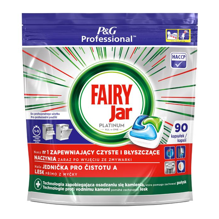 Kapsule do automatickej umývačky riadu Jar Professional Platinum All in One zanechávajú riad čistý ako nový a majú vynikajúce čistiace účinky. Jar v sebe zlučuje tekutý aj práškový čistiaci prostriedok v jednej účinnej kapsule. Vysoko rozpustný obal sa rýchlo rozpúšťa. A navyše sa kapsule tak ľahko používajú! Kapsulu nie je potrebné rozbaľovať a stačí ju len vložiť do priehradky umývačky na umývací prostriedok.
