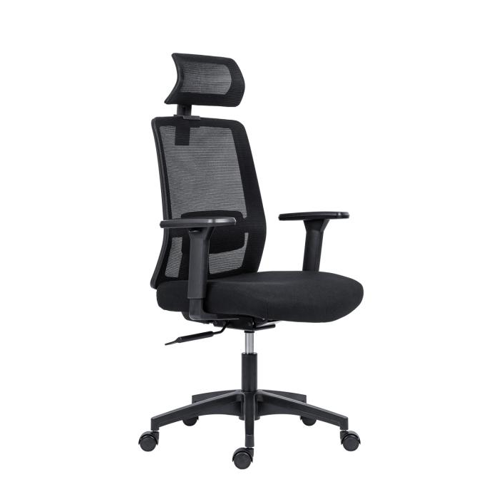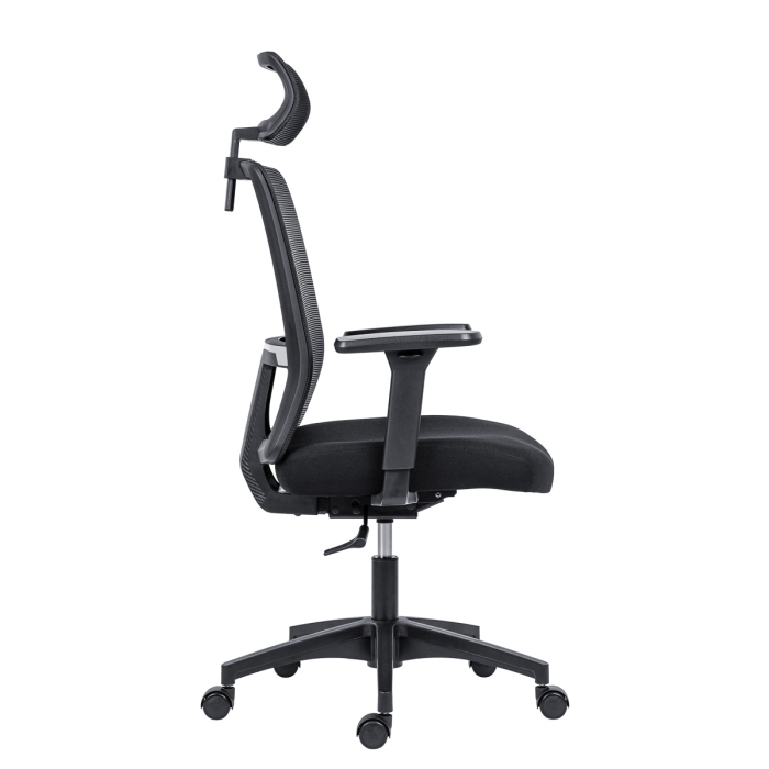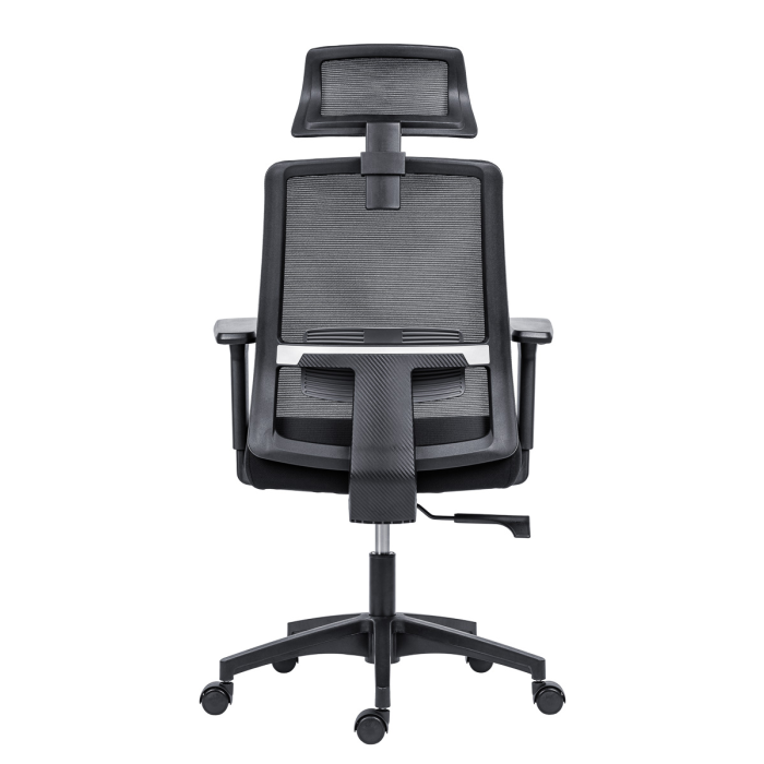 • kancelárska stolička so sieťou na operadle a podhlavníku
