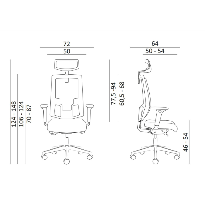 • synchrónny mechanizmus SYN-B s možnosťou plynulej premeny uhla sedadla a operadla, možnosť aretácie v 5 pozíciách, nastavenie tuhosti mechanizmu podľa telesnej hmotnosti užívateľa so 4 stupňami nastavenia intenzity