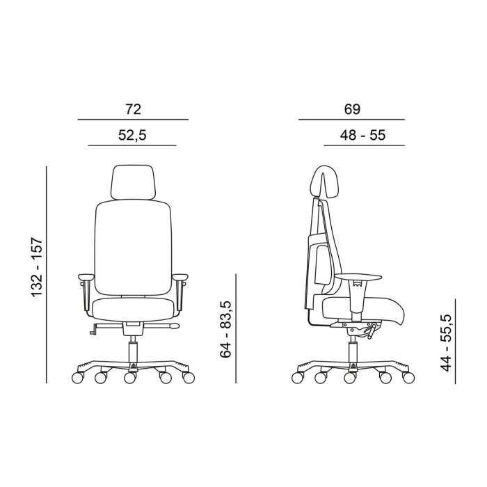 • nastavenie výšky operadla systém up-down 0-60 mm, opierka hlavy nastaviteľná v rozsahu 0-95 mm, s uzamknutím polohy