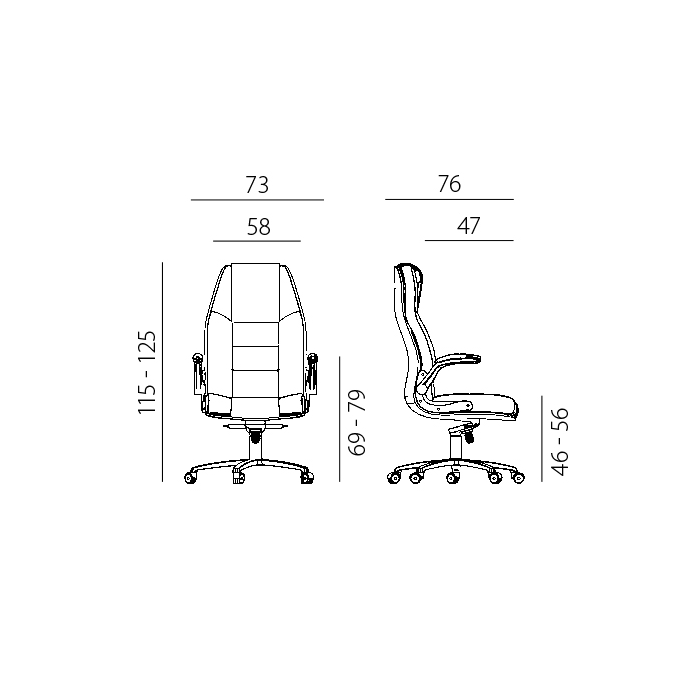 • nastavenie výšky sedenia plynovým piestom kolieska s gumovou obručou pre všetky typy podláh