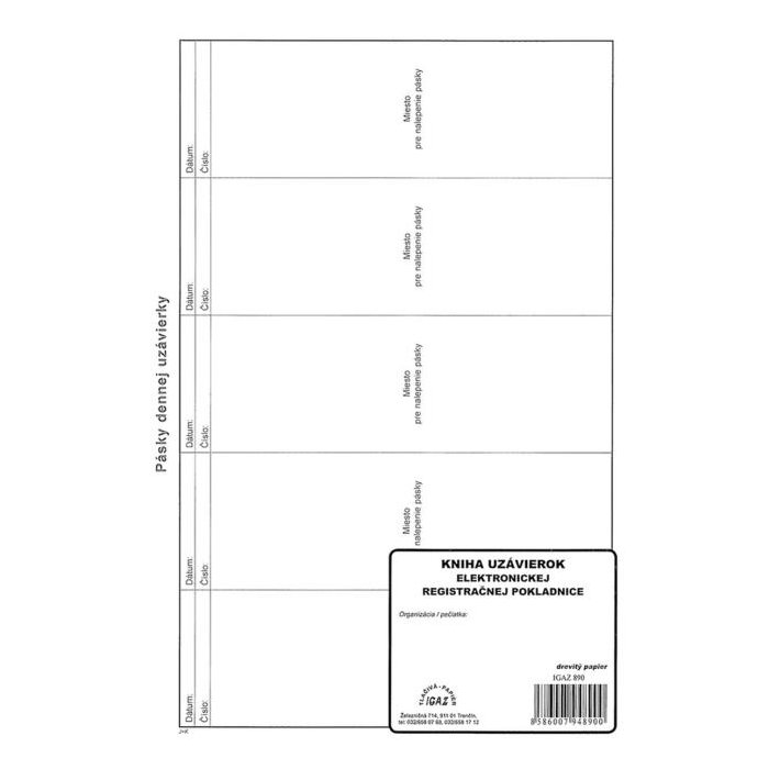 Kniha uzávierok elektr. registračnej pokladnice, A4, 96 strán, mäkká väzba