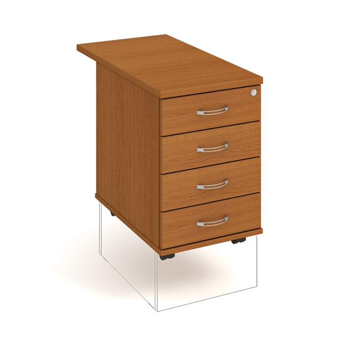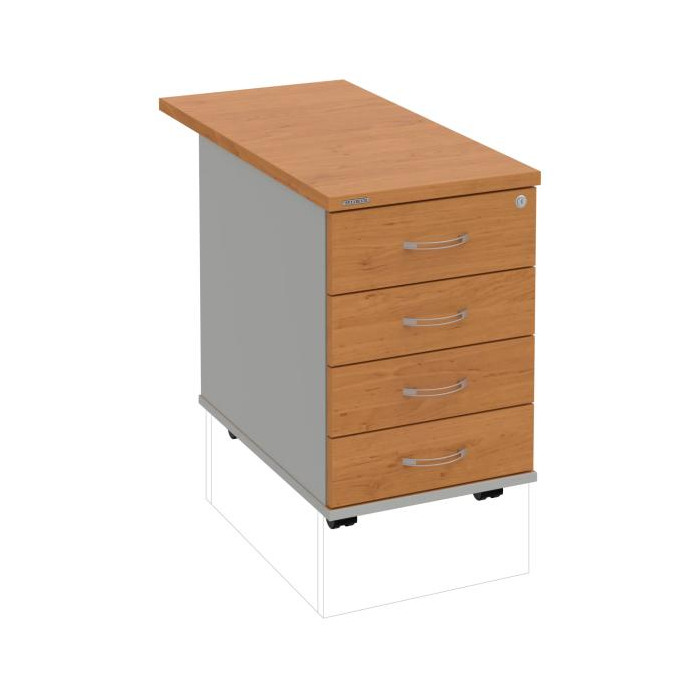 Kontajnery - všetko uložené a vždy poruke. Kontajnery sa väčšinou umiestňujú pod stoly. Mobilné modely sú vybavené kolieskami, je možné ich premiestniť podľa potreby. Základným materiálom korpusov je kvalitná laminovaná drevotriesková doska hrúbky 18 mm. Pre dlhšiu životnosť je na horný diel korpusu použitá doska, ktorej hrúbka je 25 mm. Korpusy a čelá zásuviek sú chránené proti poškodeniu hranou ABS 2 mm. Horná doska ma hĺbku 80 cm. Kontajnery sú vybavené zámkom s centrálnym zamykaním. Vďaka integrovanému systému STOP-CONTROL s centrálnym zámkom u väčšiny kontajnerov sa nemusíte báť prevrhnutiu kontajnera alebo prípadného privretia ruky. Systém zaručí, že pri otvorení jednej zásuvky sa ostatné zásuvky automaticky zablokujú. Zásuvky sú z plastu, ktorý je ľahko umývateľný a vhodný pre jednoduchú údržbu. Praktickou súčasťou vrchnej zásuvky je prehľadný organizér a priestorové deliace priečky. Vaše ceruzky, sponky a ďalšie kancelárske potreby budú vždy na poriadku. Organizér a deliace priečky sú súčasťou každého kontajnera. Na kontajnery Hobis sa vzťahuje päťročná záruka.