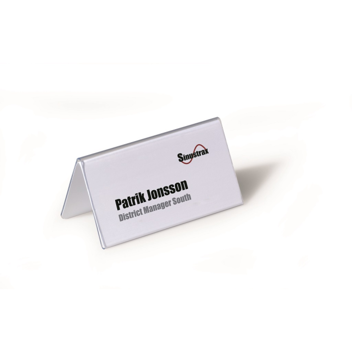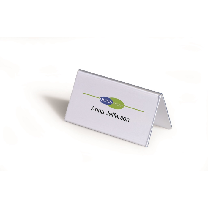 Obojstranne čitateľná stolová menovka z pevného PVC, vhodná na konferencie, recepčné pulty, ceny tovarov a popis produktov. Dodávaná s vymeniteľnou prázdnou kartou. Väčšie balenie 25 ks.
