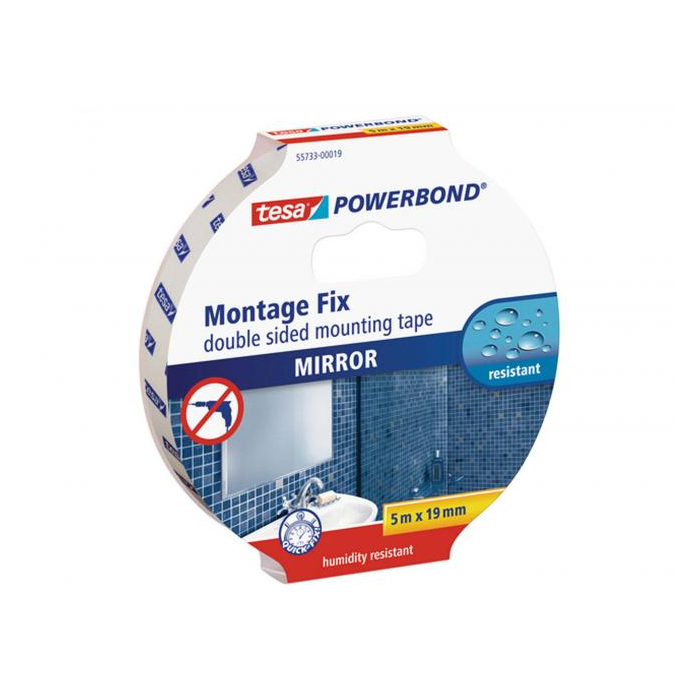 Silná obojstranná lepiaca páska na upevňovanie plochých predmetov vo vlhkých miestnostiach, ako sú napr. kúpeľne. Ideálna na zrkadlá. Udrží zrkadlá s maximálnymi rozmermi 70 × 70 cm a hrúbkou do 4 mm. Rozmery pásky 19 mm × 5 m.