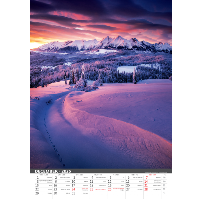 Nástenný kalendár Tatry 31,5 x 45 cm 2026