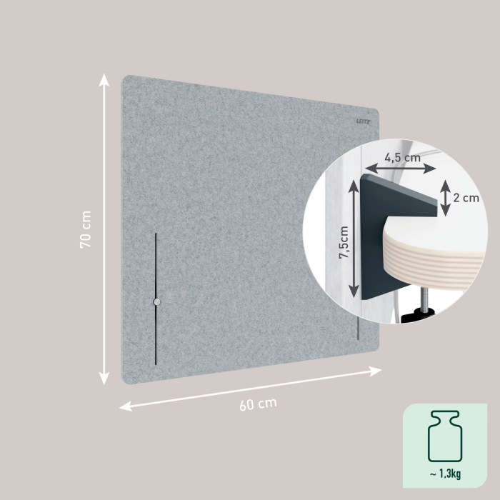 Paraván k stolu Leitz 70x80cm, sivý