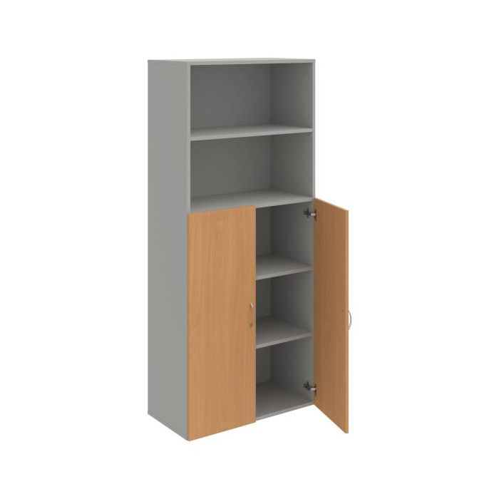 Kombinovaná skriňa - dvere/nika. Dôraz na funkčnosť a cenu. Kvalita a variabilita s nízkymi obstarávacími nákladmi. Materiály výrobcov z Európskej únie. Obojstranne pohľadový chrbát. Zabezpečenie políc proti náhodnému vysunutiu. 45 rôznych prvkov pre Vaše potreby a požiadavky. V našej ponuke nájdete skriňové moduly výšky 185 cm, 111 cm alebo 74 cm a šírky 80 cm alebo 40 cm. Hĺbka všetkých modelov skríň radu Drive je 40 cm (42 cm s dverami). Chrbát, vyrobený z 3 mm hrubých dosiek HDF, je obojstranne pohľadový, takže skrine môžete použiť ako priestorový deliaci prvok. Vďaka polohovateľným policiam (hrúbky 18 mm) je možné priestor prispôsobiť Vašim predstavám. Základná výška úložného priestoru je prispôsobená výške štandardného šanónu. Dvere sú chránené 2mm hranou ABS a osadené kvalitným kovaním s doživotnou zárukou. Okrem plných a presklených dverí Vám ponúkame aj skrine s roletovým systémom. Pokiaľ sa rozhodnete pre umiestnenie skríň na podlahu, nezabudnite si doobjednať rektifikačné nohy, ktoré nie sú štandardnou súčasťou objednávky. Aby sa zásielka dostala v poriadku až do Vašej kancelárie, dodávame skrine demontované v niekoľkých samostatných a bezpečne zabalených balíkoch. Súčasťou každého balenia je tiež prehľadný návod. Na skrive Drive dostanete záruku 5 rokov.