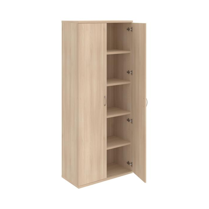 Kancelárske skrine STRONG majú robustnú konštrukciu a vyššiu nosnosť políc ako bežné kancelárske skrine.V ponuke sú skriňové moduly s výškou 185 cm, 111 cm alebo 74 cm a šírky 80 cm alebo 40 cm.Hĺbka všetkých modelov skriňového radu STRONG je 40 cm.Chrbát, vyrobený z 8 mm hrubých dosák, je obojstranne pohľadový, takže skrine môžete použiť ako priestorový deliaci prvok. Hrúbka samotných políc je 25 mm, čo znamená nosnosť 80 kg na 1 policu.Korpusy, dvierka a police skríň sú olepené odolnou 2mm ABS hranou, ktorá garantuje dostatočnú ochranu proti poškodeniu.