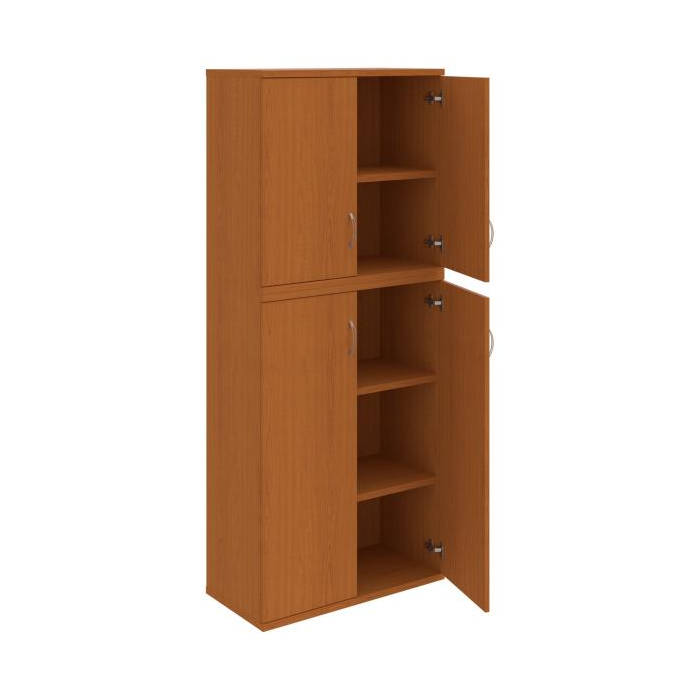 Kombinovaná skriňa - dvere/nika. Kancelárske skrine STRONG majú robustnú konštrukciu a vyššiu nosnosť políc ako bežné kancelárske skrine.V ponuke sú skriňové moduly s výškou 185 cm, 111 cm alebo 74 cm a šírky 80 cm alebo 40 cm.Hĺbka všetkých modelov skriňového radu STRONG je 40 cm.Chrbát, vyrobený z 8 mm hrubých dosák, je obojstranne pohľadový, takže skrine môžete použiť ako priestorový deliaci prvok. Hrúbka samotných políc je 25 mm, čo znamená nosnosť 80 kg na 1 policu.Korpusy, dvierka a police skríň sú olepené odolnou 2mm ABS hranou, ktorá garantuje dostatočnú ochranu proti poškodeniu.