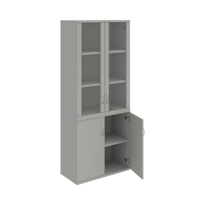 Kombinovaná skriňa - dvere/nika. Kancelárske skrine STRONG majú robustnú konštrukciu a vyššiu nosnosť políc ako bežné kancelárske skrine.V ponuke sú skriňové moduly s výškou 185 cm, 111 cm alebo 74 cm a šírky 80 cm alebo 40 cm. Hĺbka všetkých modelov skriňového radu STRONG je 40 cm.Chrbát, vyrobený z 8 mm hrubých dosák, je obojstranne pohľadový, takže skrine môžete použiť ako priestorový deliaci prvok. Hrúbka samotných políc je 25 mm, čo znamená nosnosť 80 kg na 1 policu.Korpusy, dvierka a police skríň sú olepené odolnou 2mm ABS hranou, ktorá garantuje dostatočnú ochranu proti poškodeniu.