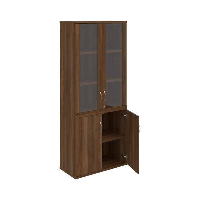 Kombinovaná skriňa - dvere/nika. Kancelárske skrine STRONG majú robustnú konštrukciu a vyššiu nosnosť políc ako bežné kancelárske skrine.V ponuke sú skriňové moduly s výškou 185 cm, 111 cm alebo 74 cm a šírky 80 cm alebo 40 cm. Hĺbka všetkých modelov skriňového radu STRONG je 40 cm.Chrbát, vyrobený z 8 mm hrubých dosák, je obojstranne pohľadový, takže skrine môžete použiť ako priestorový deliaci prvok. Hrúbka samotných políc je 25 mm, čo znamená nosnosť 80 kg na 1 policu.Korpusy, dvierka a police skríň sú olepené odolnou 2mm ABS hranou, ktorá garantuje dostatočnú ochranu proti poškodeniu.