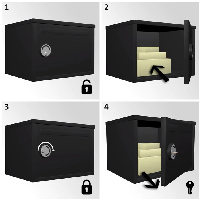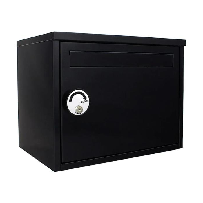Čierna poštová schránka na balíky ale aj na klasickú poštu a poštové zásielky. Poštu vám poštár vhodí predným vhodom bez nutnosti čokoľvek otvárať. Krytka na prednom vhode zabráni vnikaniu dažďovej vody a nečistôt do vnútra schránky. V prípade balíkov je obrovskou výhodou špeciálny kľúčový zámok. Nechajte zámok otvorený keď je schránka prázdna. Poštár iba otvorí veľké predné dvierka, vloží balík a zamkne špeciálny zámok z vonkajšej strany. Následne pomocou kľúča zámok otvoríte a balík vybehnete. Jednoduché ale účinné a stále bezpečné. Poštovú schránku na balíky upevníte na stenu, fasádu domu alebo múr, či plot pomocou priloženého materiálu na upevnenie.