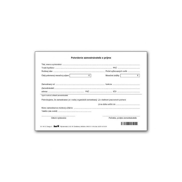 Potvrdenie zamestnávateľa o príjme