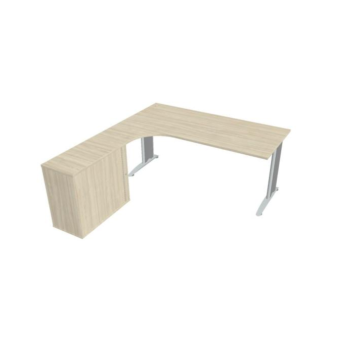 Kancelárský nábytok Flex sa vyznačuje elegantným dizajnom a originalitou technického riešenia. Pracovné dosky s optimálnými rozmermi a tvarom využívajú ergonomicky a efektívne celú pracovnú plochu. Pracovná doska stola má hrúbku 25 mm a je olepená 2mm ABS hranou, ktorá stoly pomáha chrániť pred poškodením. O káble od PC alebo stolovej lampy, sa postará praktická priechodka, ktorá káble jednoducho zvedie pod dosku, kde si s nimi poradia šikovne skonštruované držiaky. Moderné kovové nohy vás oslovia súčasným dizajnom a funkčnosťou. Prepojené sú teleskopickým káblovým kanálom, vďaka ktorému je stôl dokonale stabilný aj bez pracovnej dosky. Okrem toho slúži kanál aj ako elegantný úkryt pre vedenie všetkej kabeláže vášho PC, ktorá je potom pod plastovým krytom kovovej nohy zvedená k podlahe. Tento spôsob vychádza v ústrety aktuálnym trendom kompletne skrytej kabeláže.