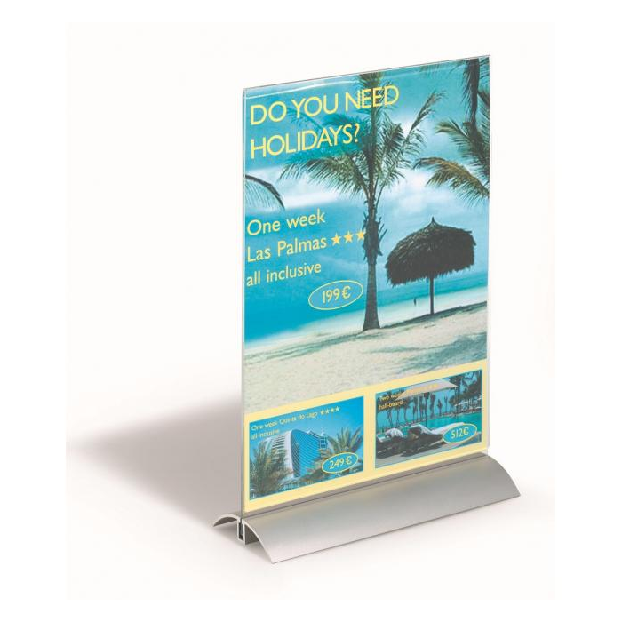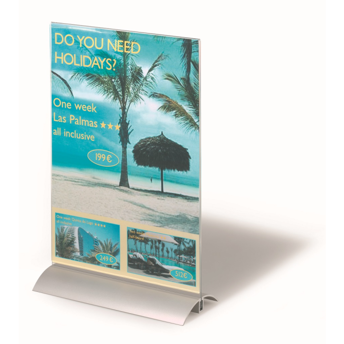 Stojan vhodný na prezentáciu ľubovoľných informácií s dobrou stabilitou. Vrchná časť vyrobená z kvalitného číreho akrylu, elegantný podstavec z hlíníka.