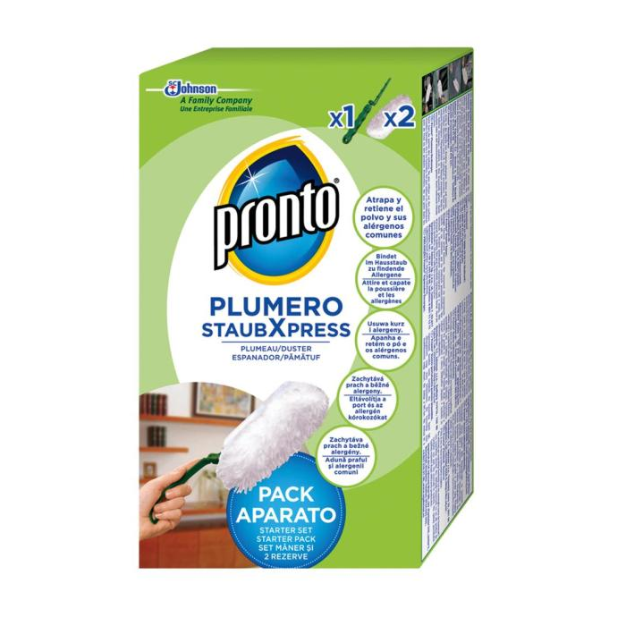 Prachovka Pronto predstavuje pohodlný a účinný spôsob utierania prachu z nábytku a ťažko dostupných miest. Dlhé chlpaté vlákna sa dostanú do medzier a štrbín, vďaka roztiahnuteľnej rukoväti možno utierať prach na ťažko prístupných miestach. Prachovka sa dá ľahko vyprášiť. Balenie obsahuje: 2 ks
