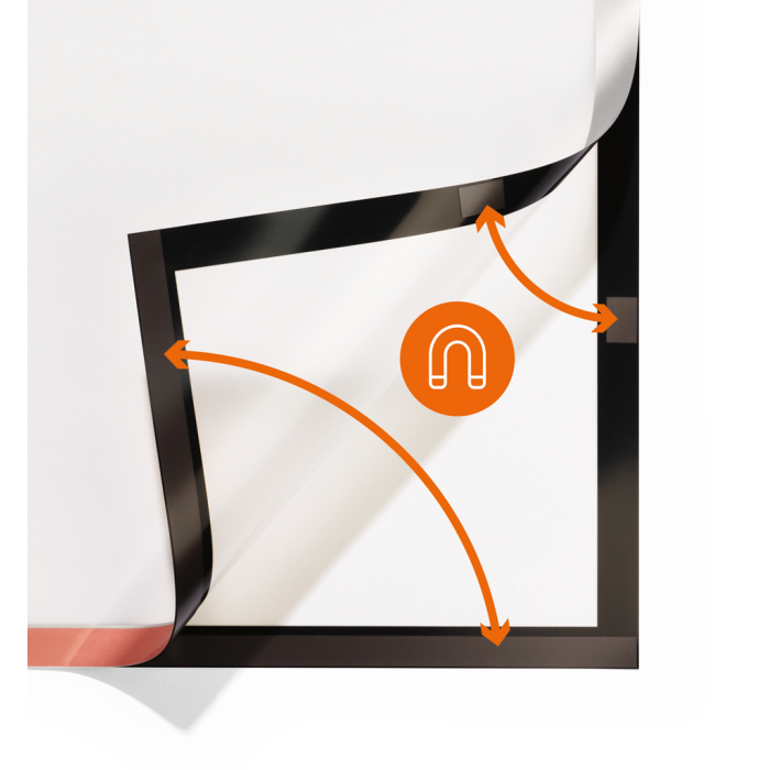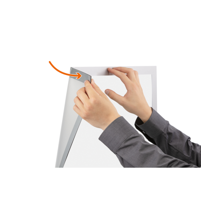 Informačný panel s prednou magnetickou časťou samolepiaci na 2 kratších stranách. „Bezbublinkové“ prevedenie vďaka lepeniu na 2 zo 4 strán. Ideálny na vystavovanie oznamov. Informácie sa ľahko vymieňajú a sú čitateľné z oboch strán. Vhodný na hladké a pevné povrchy. S ochranou voči UV žiareniu. Odoláva teplotám až do 70 °C. Formát A1. Farba strieborná.
