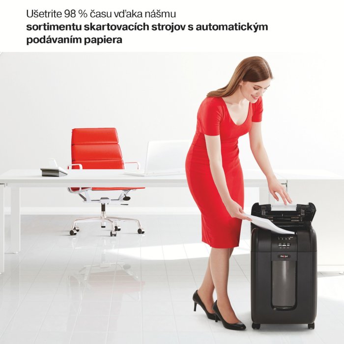 Skartuje CD, kreditné karty, kancelárske sponky a drôtiky zošívačiek"