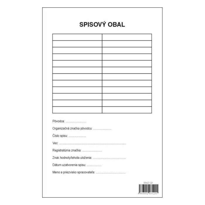 Evidenčné tlačivo. Spisový obal, A4 dvojlist, 80 g, balenie 500 ks.