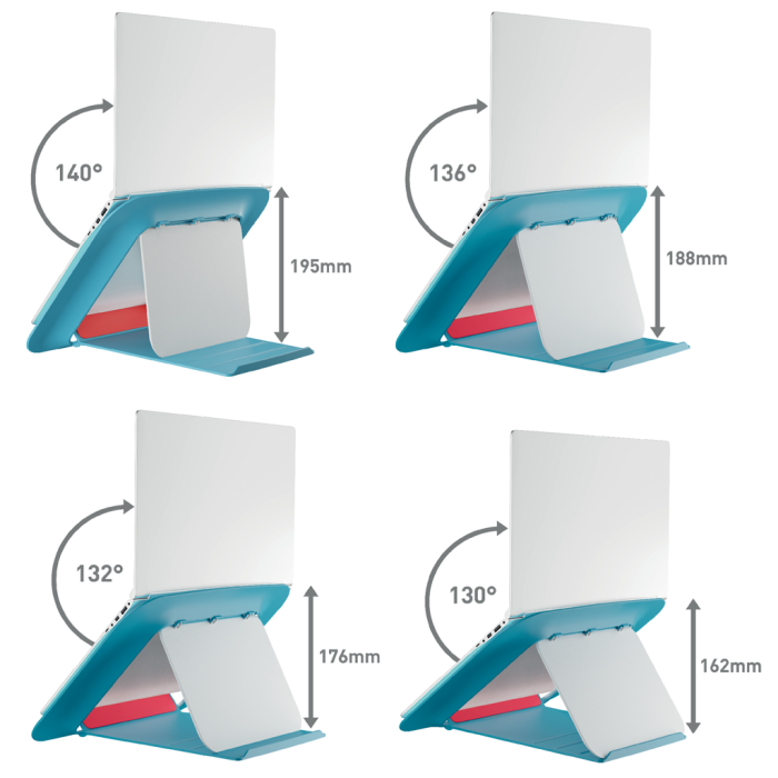 Ergonomicky navrhnutý stojan na notebook pre maximálne pohodlie pri práci. Ideálny na prácu posediačky alebo postojačky pri výškovo nastaviteľnom stole, čo ešte viac zlepšuje celkové zdravie a pohodu Nastavte výšku tak, aby bola obrazovka notebooku v ideálnej pozícii na sledovanie Stojan na notebook udržiava batériu a ostatné komponenty v perfektnom stave vďaka chladeniu prúdením vzduchu Rýchle a jednoduché individuálne prispôsobenie stojana na notebook, štyri rôzne výšky na výber Vďaka kompaktnému dizajnu a podstavcu je ideálnym doplnkom každého pracovného stola Keď ho nepoužívate, jednoducho ho zložíte Gumové prvky a integrovaný držiak poskytujú bezpečné a stabilné uchytenie vášho notebooku, aby zostal pevne na svojom mieste Vhodné pre notebooky od 13` do 17`. Tento výrobok by sa mal používať s externou klávesnicou a myšou (predáva sa samostatne) Kolekcia Leitz Cosy Ergo spája štýl s prvotriednou kvalitou na vytvorenie zdravého a aktívneho pracovného prostredia. Farba modrá.