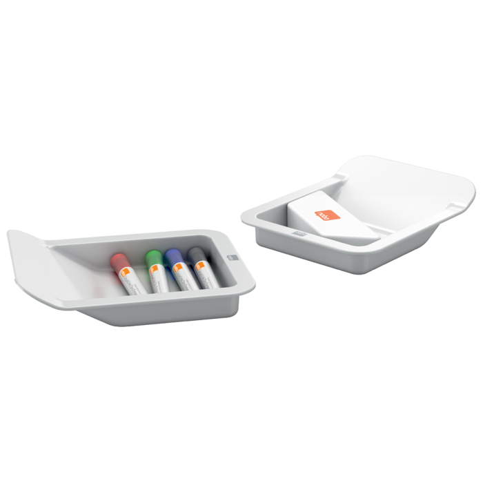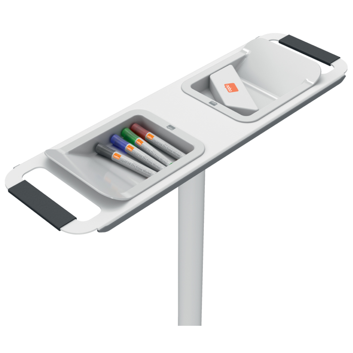 System Move & Meet ponúka maximálnu flexibilitu v akomkoľvek pracovnom prostredí a je ľahko nakonfigurovaný tak, aby dokonale vyhovoval vašim potrebám. Vybavený mobilnou základňou a 2 x odnímateľnými obojstrannými magnetickými tabuľami, systém pojme až 4 x obojstranné ľahké biele tabule alebo nástenky vytvárajúce rozsiahlu písaciu alebo zobrazovaciu plochu na zapisovanie vašich projektových plánov a nápadov. Vďaka modernému a inovatívnemu dizajnu zakrivených rohov s protišmykovým lemom budú dosky doplnkom každého prostredia. Testované podľa DIN EN 14434, certifikované TUV/GS. Kompletný so 4 perami na tabuľu, handričkou na gumu na tabuľu z mikrovlákna a dvoma integrovanými odnímateľnými zásobníkmi na perá. Rozmer každej tabule 1800 x 900 mm.