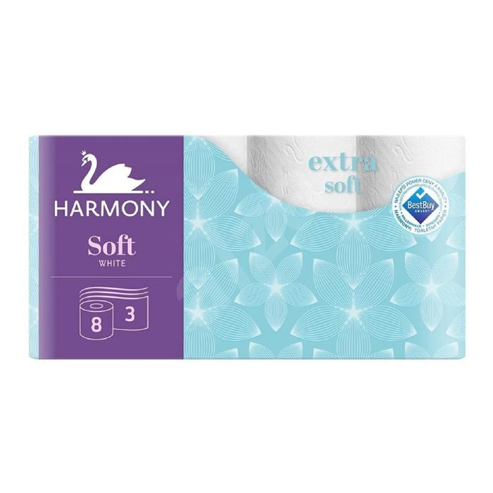 Toaletný papier 3-vrstvový Harmony Extra Soft biely, recykel, návin 17,5 m (8 ks)