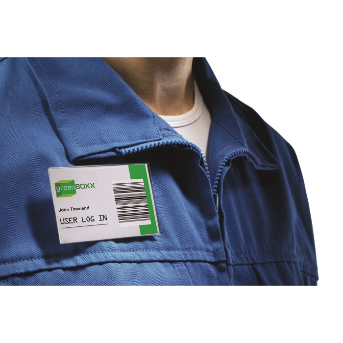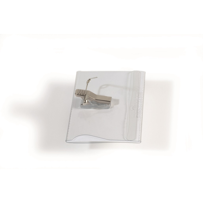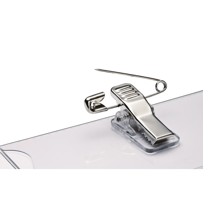 Visačky z pevného priehľadného PVC. Uchytenie na odev pomocou štipca alebo zatváracieho špendlíka. Náhradné papiere do visačiek obj. kód DU145502. Rozmery: 90x54 mm. Balenie 50 ks.