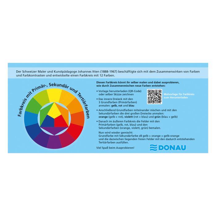 Vodové farby Donau, 12 farieb, vrátane nepriehľadnej bielej. Vyberateľné misky, paleta na miešanie farieb.