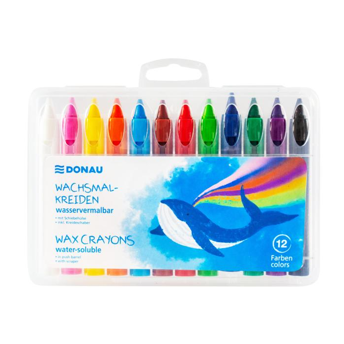 Voskové pastelky DONAU v puzdre, rozpustné vo vode, 12 ks, mix farieb