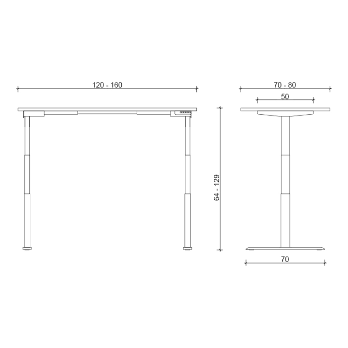 • výškovo nastaviteľný stôl s elektrickým 2-motorovým pohonom a 3-segmentovým zdvíhacím mechanizmom