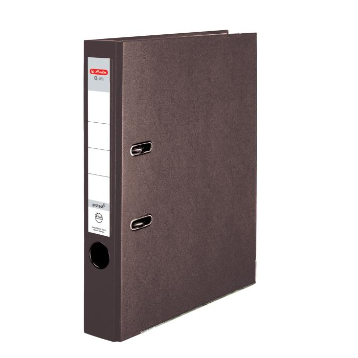 Pákový zakladač Q.file protect formátu A4. Šírka chrbta 5cm. Materiál polypropylén, zásuvné vrecko, vnútorný biely podlep, lepenka 2mm, otvor na zadnej strane a radokrúžok pre lepšiu manipuláciu, kovová lišta. Farba hnedá. Väčšie balenie 25 ks.