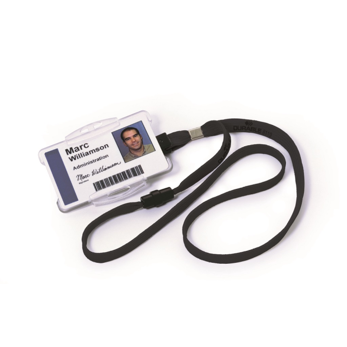 Remienok s bezpečnostnou poistkou. Poistka sa uvoľní pri zachytení remienka alebo silnom potiahnutí. Vhodný ku všetkým visačkám značky Durable. Dĺžka 44 cm, šírka 10 mm. Balenie 10 ks.