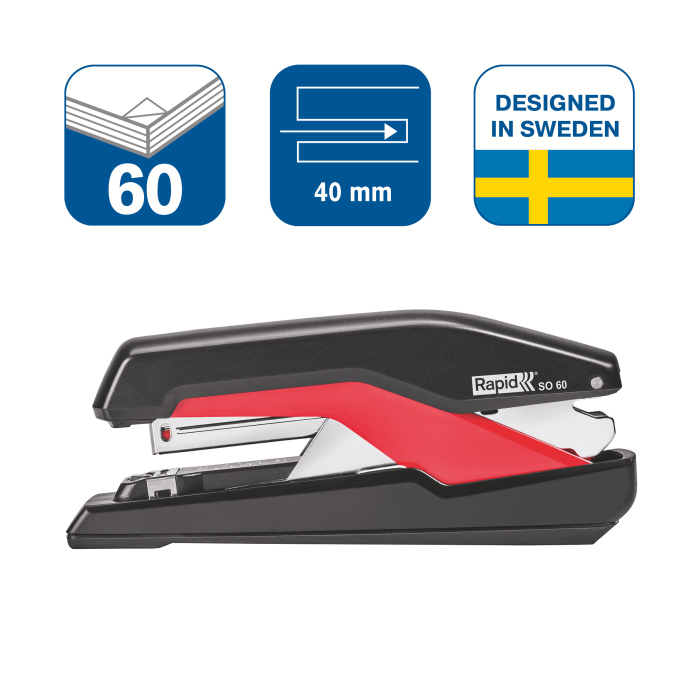 Revolučná zošívačka kompaktných rozmerov a s klasickou kapacitou zásobníka, vybavená patentovanou technológiou Omnipress®, ktorá umožňuje s minimom sily stlačiť zošívačku po celom jej tele a ľahko tak zošiť dokument na stole i v ruke. To všetko v kombinácii s technológiou super plochého zošívania SuperFlatClinch prinášajúcou 40 % úsporu miesta pri zakladaní takto zošitých dokumentov. Farba čierna/červená.