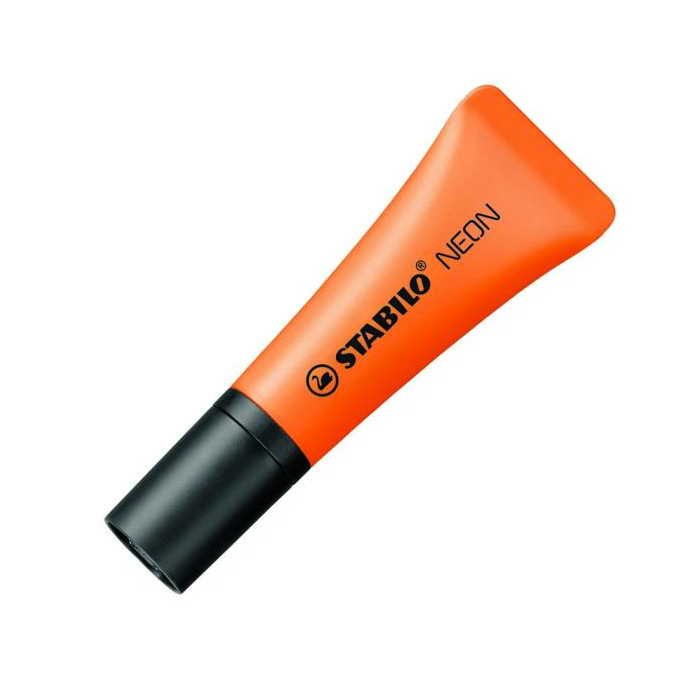 Zvýrazňovač s atramentom na vodnej báze v novom tvare tuby s mäkkou úchytovou zónou, príjemnou pri manipulácii a držaní. Použitá STABILO Anti-Dry-Out technológia zabezpečuje až 4-hodinovú ochranu pred vyschnutím atramentu pri nepoužívaní vrchnáka. Zrezaný hrot, šírka stopy 2 - 5 mm. Farba neónová oranžová. Väčšie balenie 10 ks.